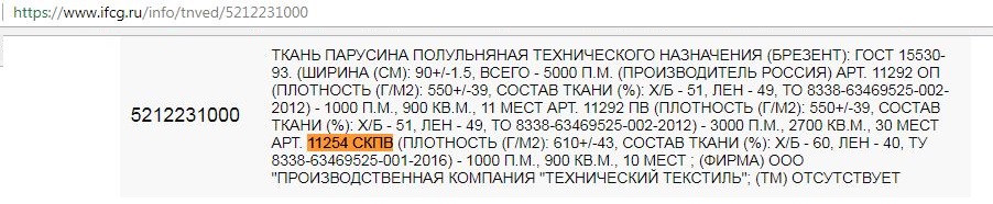 Виробником тканини А за арт.11254 СКПВ є російська фірма «Технічний текстиль».