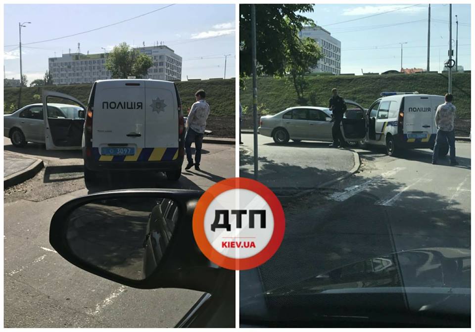 У Києві, в Дніпровському районі сталося ДТП за участю автомобіля патрульної поліції: Renault патрульних зіткнувся з іншою легковою машиною.