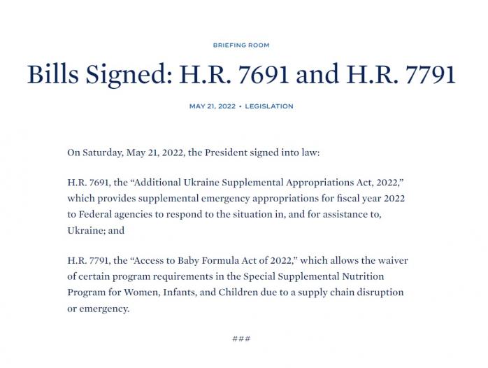 Президент Сполучених Штатів Америки Джозеф Байден сьогодні, 21 травня, підписав законопроект про надання Україні 40 млрд доларів. Про це повідомляється на сайті Білого дому.
