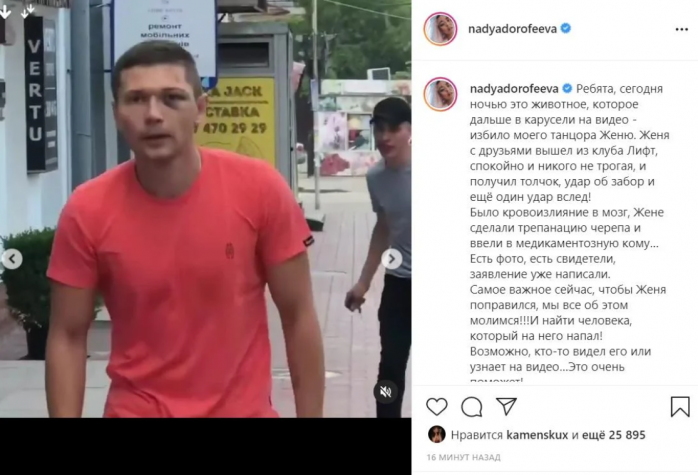 Нагадаємо, що співачка Надя Дорофєєва заявила, що невідомий побив її танцюриста Євгена. У той день хлопець із друзями вийшов з гей-клубу "Ліфт".