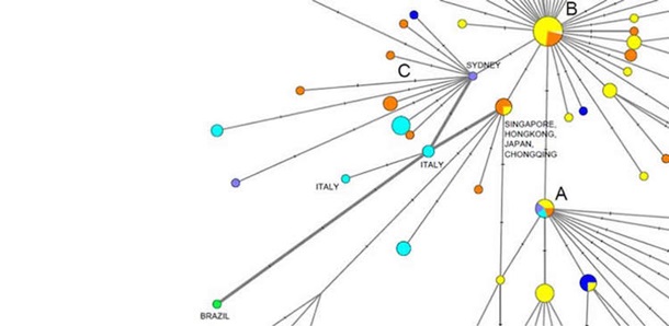 При цьому були знайдені три варіанти SARS-Cov-2, які позначили "A", "B", "C".