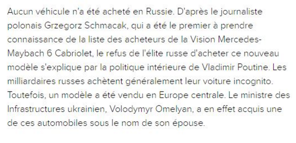 У списку 136 майбутніх власників елітного авто Maybach Coupe, вартість якого становить 2 734 000 євро, є громадянка України Світлана Бевза. Зазначимо, що саме так звуть дружину міністра інфраструктури України Володимира Омеляна. Про це пише французький таблоїд L’ехрress
