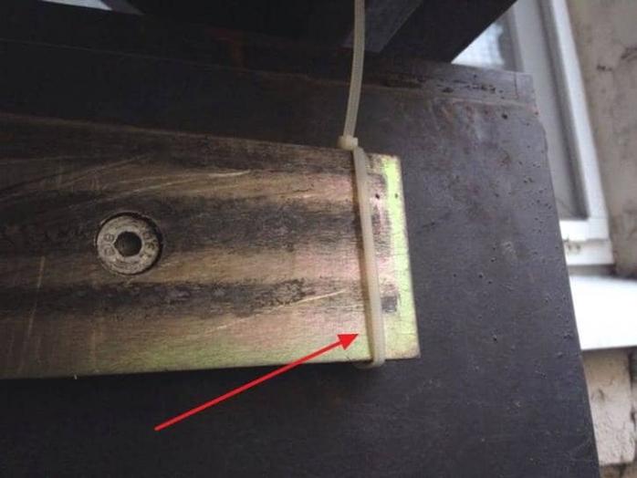 "Чергові "фішки" домушників. Вчора (18 січня. - Ред.) на дверях свого під'їзду виявив ось це. Пластиковий хомут на магнітному замку", - повідомив Зайцев.
