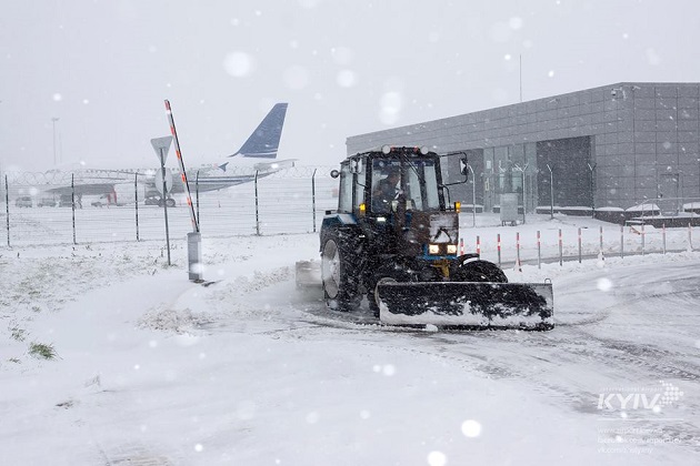 Сильний снігопад у Києві викликав проблеми з рейсами в столичному аеропорту.