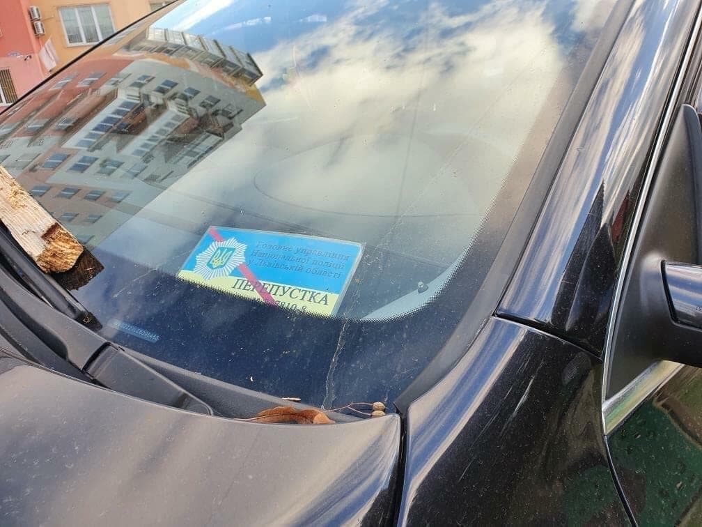 На склі автівки можна побачити перепустку, яка належить Головному управлінню Нацполіції у Львівській області.