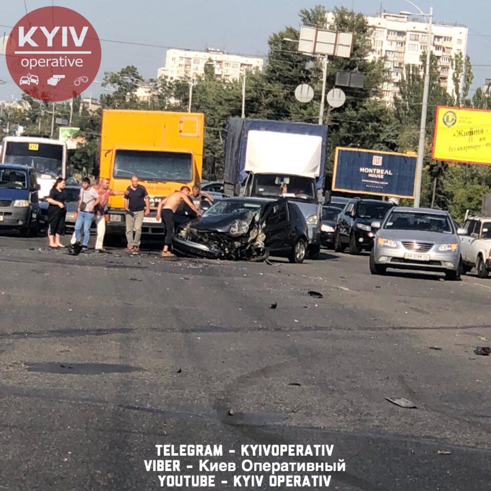 Відразу за мостом Патона в сторону Дарницької площі (Ленінградська) в Києві сьогодні вдень сталася серйозна ДТП.