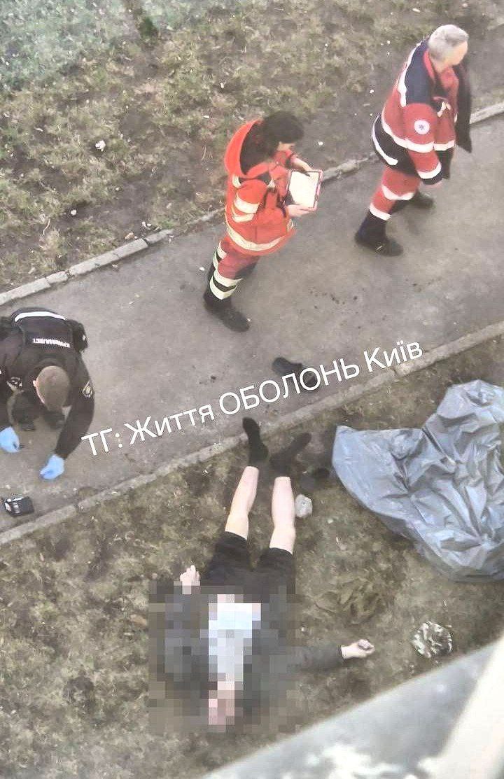 Менше ніж за годину в соцмережах повідомили, що виявлено труп другого чоловіка. Тіло лежало під будинком на вулиці Прирічній, 19, а поряд - гумові капці.