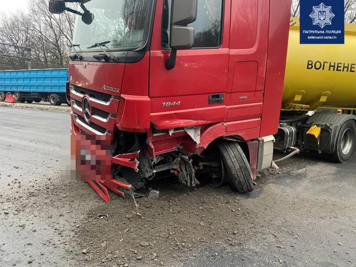 Патрульні поліцейські займаються регулюванням руху. Оскільки, на зазначеній ділянці рух в напрямку Києва перекрита одна смуга руху. На місці працюють рятувальники, медики та слідчі.