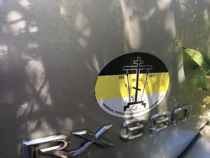 Поліція деякий час не втручалася в сутичку, а після силовики самі зняли скандальну наліпку з автівки.