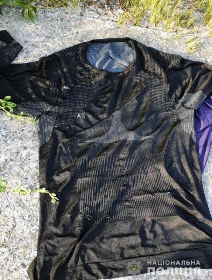 Прикмети чоловіка: на вигляд 40-55 років, зріст 175 см, обличчя кругле, волосся темне з незначним проявом сивини. Особливих прикмет немає. Був одягнений у футболку з довгим рукавом чорного кольору із замком (термобілизна), светр фірми «Under Armour» фіолетового кольору (термобілизна), футболку з довгим рукавом чорного кольору (термобілизна), спортивні чорні штани фірми «Adidas», кросівки чорного кольору з бежевими шнурками фірми «NIKE», розмір 42.