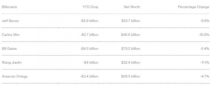 Найбільше втратив засновник сайту Amazon Джеф Безос — майже шість мільярдів доларів. Засновник Microsoft Білл Гейтс втратив 4,5 мільярда доларів. Збитки іншого бізнесмена — засновника мережі одягу Zara Амансіо Ортега — склали майже три з половиною мільярди доларів.