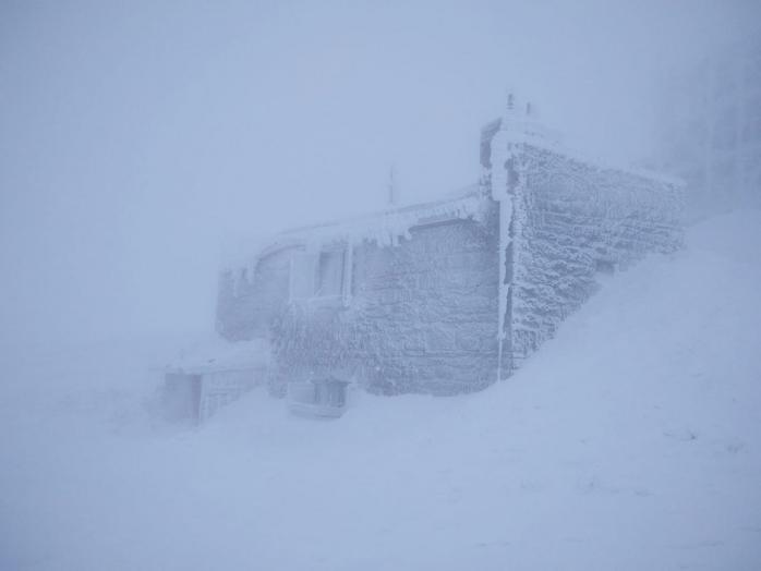 "На г. Піп Іван Чорногірський хмарно, видимість обмежена до 30 м. Вітер північний, північно-східний 10-12 м/с. Падає сніг", – йдеться в повідомленні.