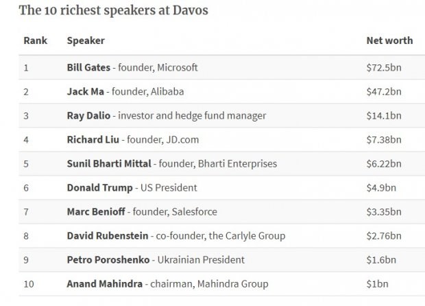 Додамо, що загальна сума стану всіх спікерів Давосу-2018 становить 414,3 мільярда доларів, що трохи менше, ніж було в 2017-му - 469,5 мільярда доларів.