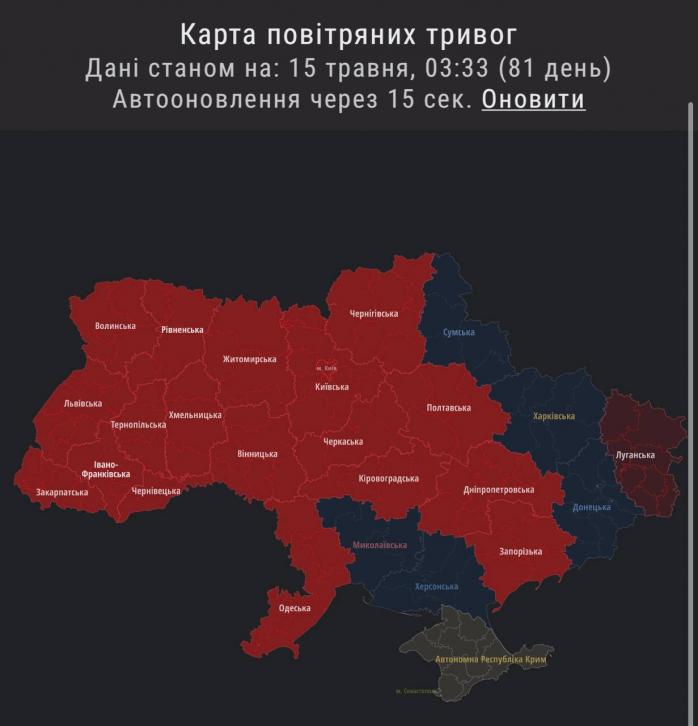 Додамо, що сьогоднішньої ночі майже по всій території України лунала повітряна тривога.