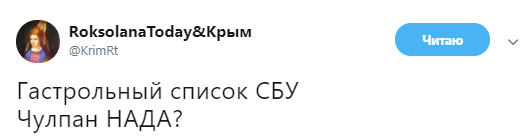 "Гастрольний список СБУ Чулпан НАДА?", - йдеться у повідомленні.