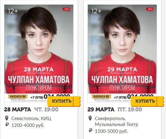 Стало відомо про гастрольний тур до Криму відомої російської актриси Чулпан Хаматової.