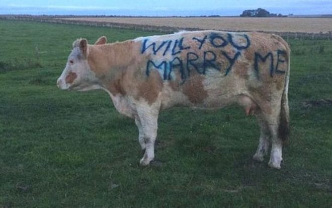 Фермер з Шотландії зробив пропозицію своїй дівчині, написавши маркером фразу “Чи вийдеш ти за мене?” на одній зі своїх корів