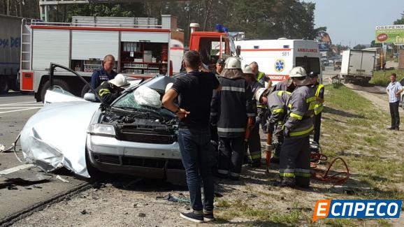 Водій AUDI A6 рухаючись в напрямку Гостомеля, порушуючи ПДР, вирішив обігнати бус та здійснив лобове зіткнення з Польською фурою ДАФ, яка сьогодні заїхала до України.