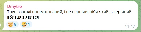 "Труп взагалі пошматований, і не перший, ніби якийсь серійний вбивця з'явився", - пише у соцмережах Дмитро і додає, що проходив повз місце моторошної знахідки.