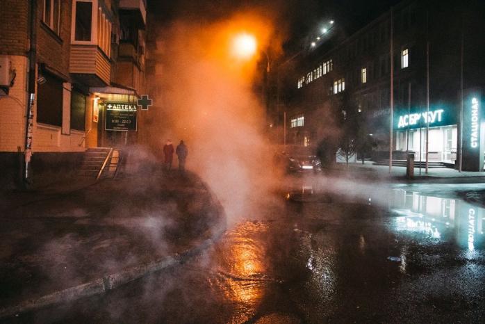 У Києві у ніч на 15 січня на вулиці Сім'ї Іздиковських, що розташована неподалік від Повітрофлотського проспекту, прорвало трубу з гарячою водою.