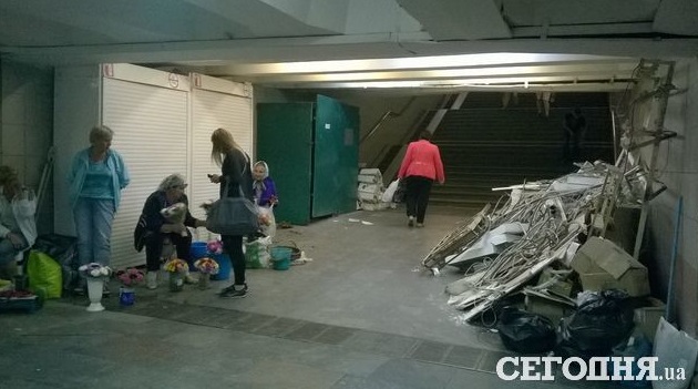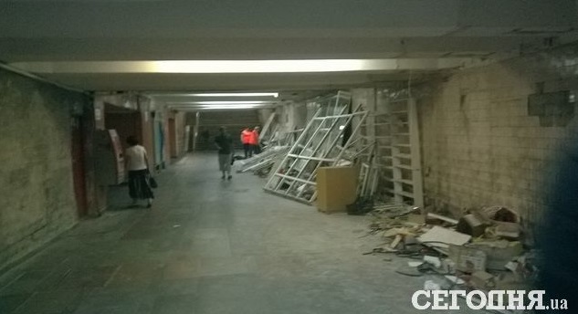 У Києві, в підземному переході, який веде до "старого" виходу зі станції метро "Лісова", демонтують ряд торговий точок.