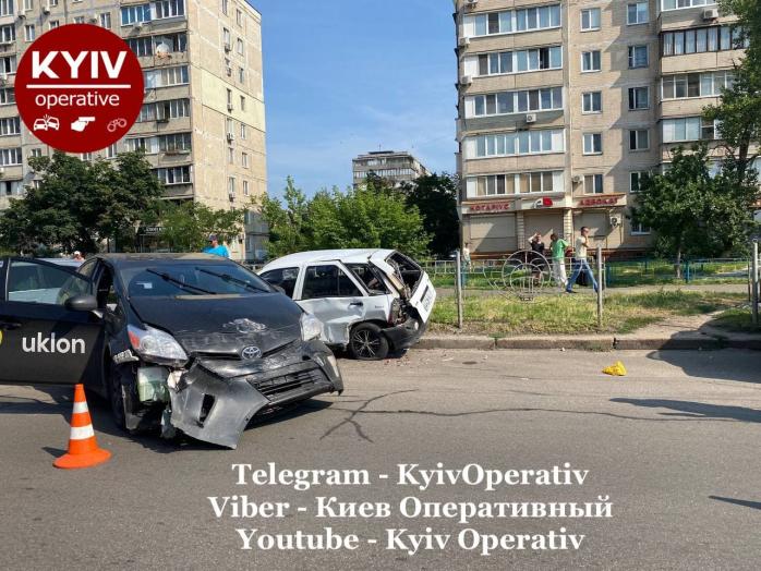 "Попередньо, водій таксі Uklon на Toyota намагався проскочити перехрестя на червоний сигнал світлофору, але не встиг і зачепив автомобіль Audi. Внаслідок зіткнення Toyota відкинуло у припаркований Daewoo, Fiat та ще одну Audi", - йдеться у повідомленні.