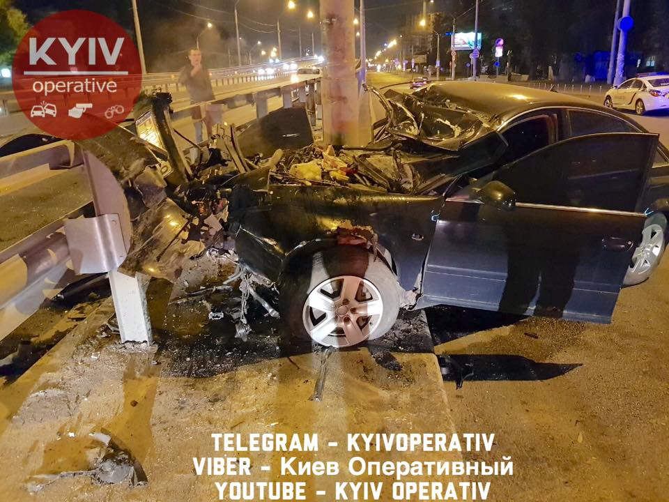 У Києві в районі станції метро "Нивки" автомобіль Audi на швидкості влетів у відбійник.