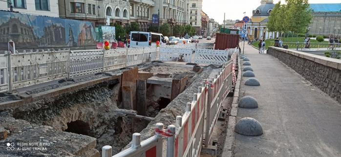 У центрі Києва на Подолі комунальники під час ремонтних робіт виявили частину старих дренажних мереж. Про це у Facebook повідомляє Історико-культурний центр "Річкова брама Києва".