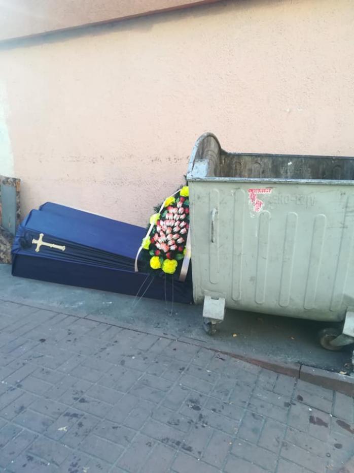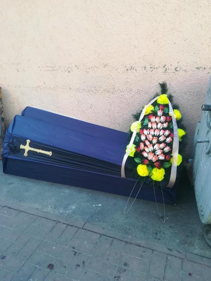 У столиці по вулиці Жилянська, 76, вранці люди побачили труну та ритуальні квіти. Про це на своїй сторінці у Фейсбук написала користувач соцмережі Natalya Kylakovskaya