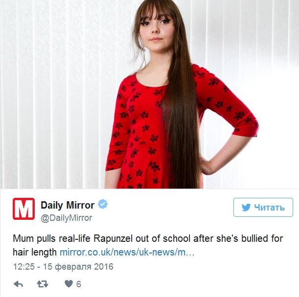 Учницю старшої школи в шотландському місті Солткотс однокласники задразнили за довжину волосся. Як пише The Daily Mirror 15 лютого, матері 15-річної Ерон Фернандо довелося перевести «живу Рапунцель» на домашнє навчання.