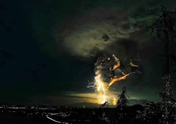 Такі вулканічні грози називають "брудними". Під час них в хмарі попелу, що піднімається з жерла вулкана, утворюються блискавки.