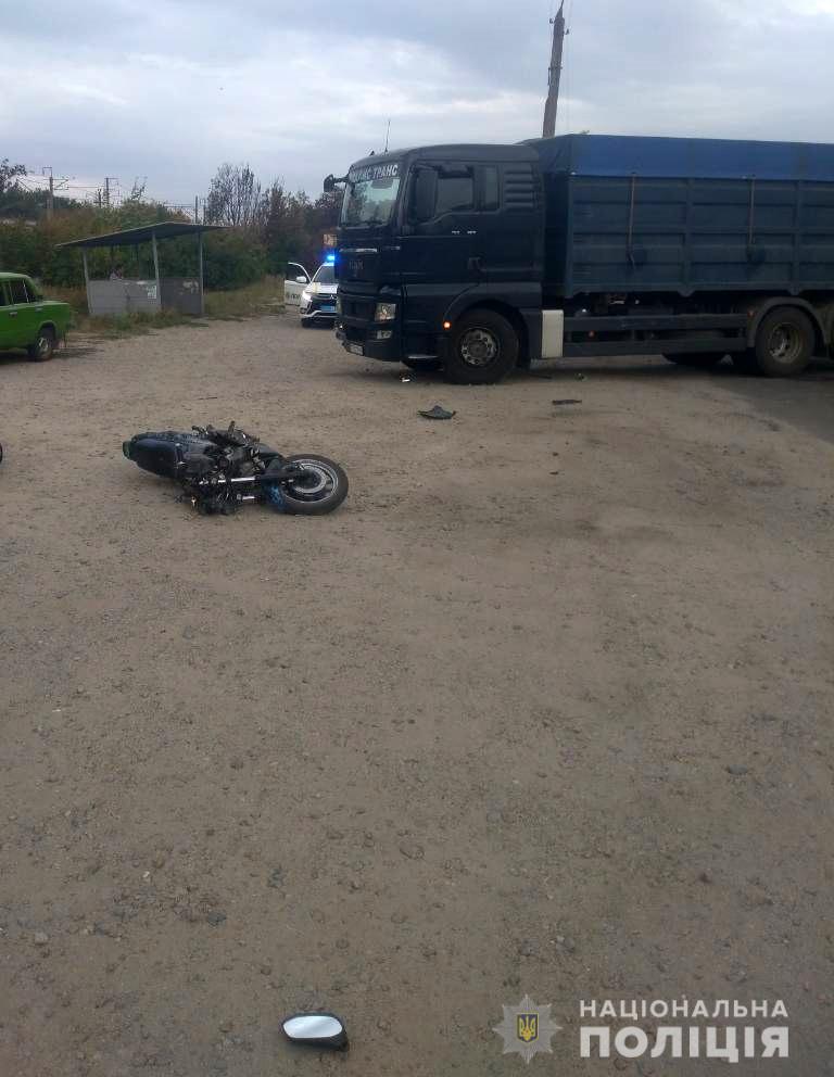 Водій автомобіля "МАН", 1989 року народження, під час зміни напрямку руху не переконався в безпеці маневру та вчинив зіткнення з мотоциклом G-max.