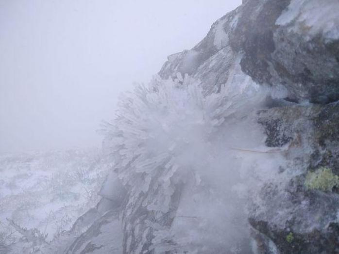 Ще вчора гору огортав туман та падав дощ, сьогодні туди прийшов мороз та перший сніг.