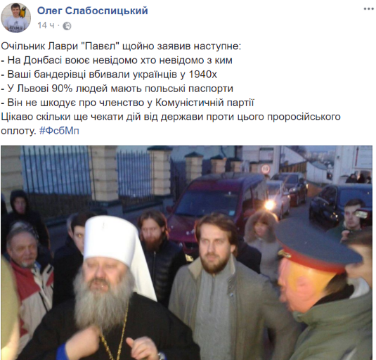 Приклади висловлювань Павла на своїй сторінці в Facebook навів громадський активіст Олег Слабоспицький.