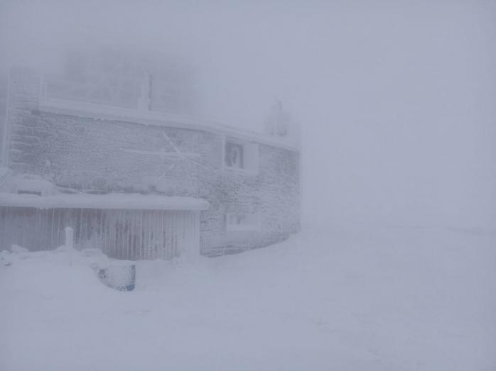 “Станом на 11:35 19.10.2020 на г. Піп Іван Чорногірський хмарно, видимість обмежена до 30 м. Випало 2 см снігу. Вітер південно-західний 10-12 м/с. Температура повітря −1°С”, — йдеться в повідомленні.