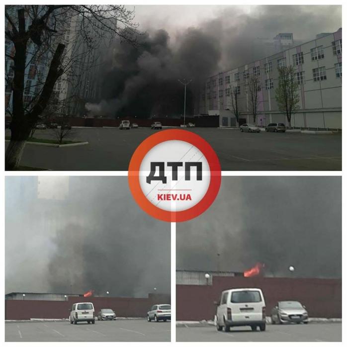 "Київ. Пожежа. Горять господарські приміщення ТРЦ "Мегамаркет" по вулиці Сурикова 3 а. Пожежні на місці. Працюють", - йдеться у повідомленні.