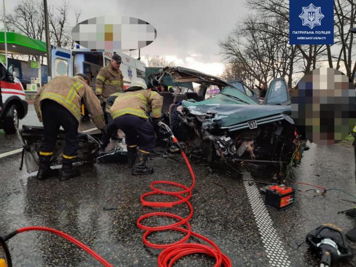 "Аварія сталася на трасі, поблизу із АЗС Amic. За попередньою інформацією, водій легковика Peugeot на повному ходу в‘їхав у припарковану фуру", - повідомляє паблік "Київ оперативний".
