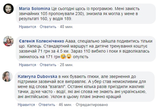 «Щойно викликала Uklon з Проспекту науки, 59 до Інститутської. Тариф показало 188. Зазвичай 125. Ну ок, думаю, година-пік. Аж тут гульк: знімає 271 грн. Приїхав водій, я у нього питаю, на що він відповідає, що у нього теж тариф 271. Дзвоню в підтримку, пояснюю проблему. На що мені мило відповідають, що це не проблема додатку, а проблема «нестабільного з'єднання» з інтернетом. Цікаво-цікаво. Тобто на проспекті Науки у нас нестабільне з'єднання? А навіть якщо, припустимо, і так, то виходить, що глюк чомусь не на користь пасажира», - пише у своєму Facebook журналістка і письменниця Анастасія Мельниченко.