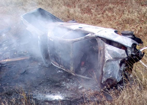 Легковик зіткнувся з вантажівкою, з'їхав в кювет, перекинувся і загорівся