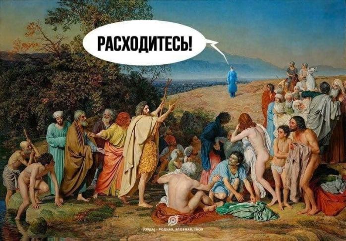 Після введення обмежувальних заходів в Україні в зв'язку з поширенням коронавірусу, які забороняють, зокрема, масові зібрання, в мережі з'явилися з цього приводу фотожаби з використанням відомих живописних творів.